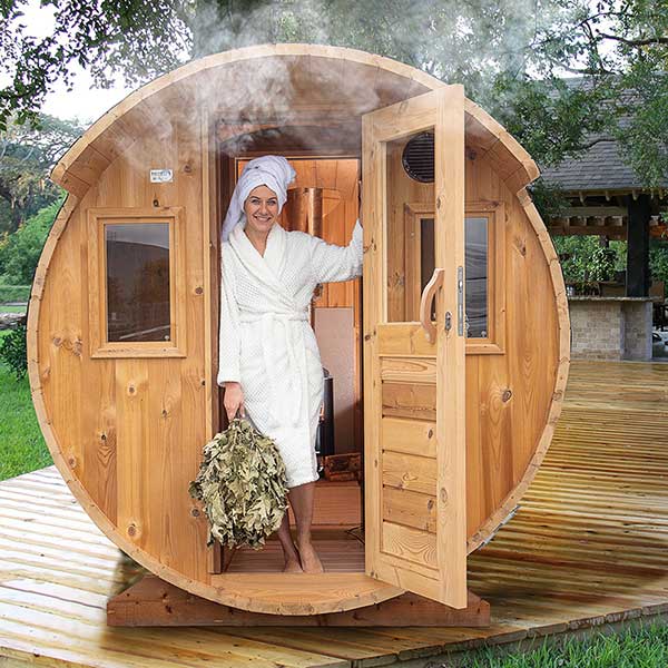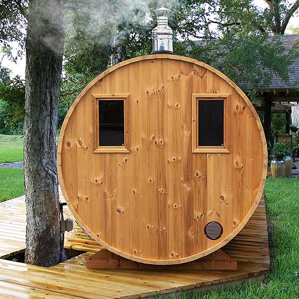 Saunassa standardi-ikkunat (ei panorama-ikkunaa).